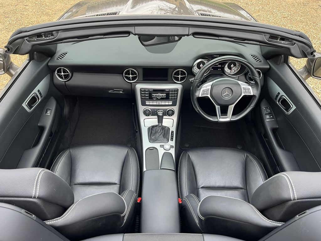 This is a stunning ULEZ compliant high specification SLK with just 53,624 miles and FULL SERVICE HISTORY (MAINLY MERCEDES) ! Serviced at 4K, 9K, 12K, 17K, 22K, 27K, 32K, 38K, 44K, 46K, 49K, 51K, 52K, and just serviced by us at 53K. The vehicle benefits from Full black leather interior - Alloy wheels - Satellite navigation - Cruise control - Electric windows - Bluetooth phone connectivity and media streaming - DAB radio - Dual-zone climate control - AUX and media points - Voice control - Multi-function steering wheel - LED daytime running lamps - Auto-headlights - Auto-wipers - Auto-dimming rear view mirror - 3 stage heated seats - Locking wheel nuts and key - Tailored carpet mat set - 2 x remote keys - Spare wheel and toolkit - Owners manual and book pack - Just serviced - finished in stunning metallic grey!