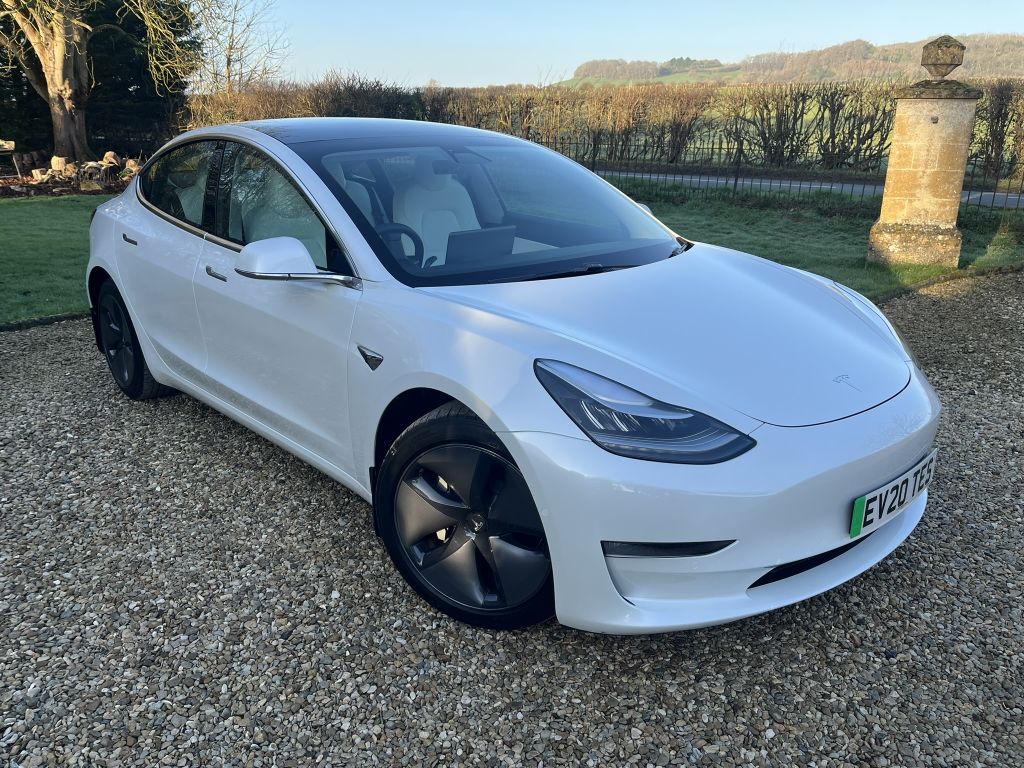 This 2020 Tesla Model 3 Long Range Dual Motor AWD presents an exceptional ownership proposition with its remarkably low mileage of JUST 17,509 miles, having been cherished by only ONE LADY OWNER since new. As a fully electric vehicle, this four wheel drive Model 3 boasts a substantial 78 kWh battery. Convenience is key with features like keyless entry and go, allowing seamless access and operation. Inside, occupants will appreciate the comfort provided by 12 electric adjustable heated front seats for those colder journeys. The fixed panoramic glass roof adds an airy feel to the cabin, while adaptive cruise control enhances the driving experience on longer trips. It also benefits from Genuine Tesla waterproof moulded mats, 13amp standard home charger, Fast charger cable, Programmable remote buttons, Power-fold mirrors - All round cameras and parking sensors, 4 x key cards, ONLY ONE LADY OWNER FROM NEW, Matching set of Michelin tyres, ULEZ compliant and Cherished Tesla numberplate 'EV20 TES' included in sale, finished in Pearlescent white!
