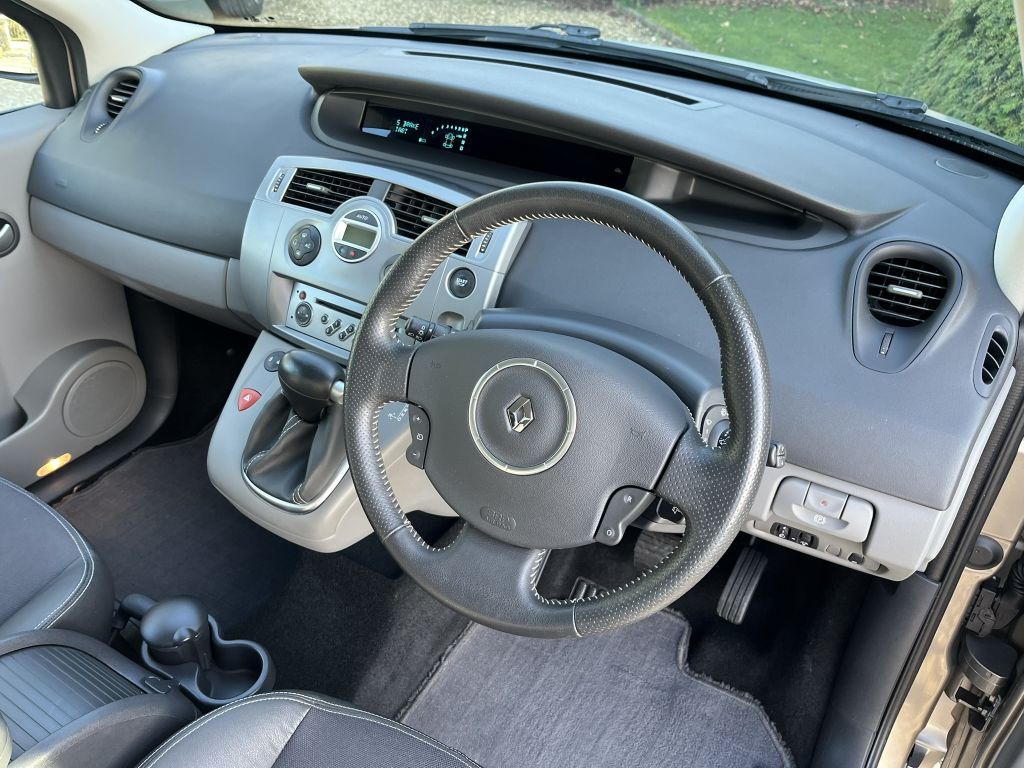This is an ultra low mileage Automatic ULEZ compliant Scenic MPV with just 10,130 MILES, ONLY ONE FAMILY OWNER FROM NEW and FULL SERVICE HISTORY! Services at 1K, 2K, 2.9K, 3K, 4K, 5K (including timing belt), 5.9K, 6K, 6.9K, 7K, 7.7K, 8K and just serviced by us at 10K. This is a high specification MPV which benefits from Climate control - Alloy wheels - Cruise control - Electric windows front and rear - Multi-function steering wheel - Auto-dimming rear view mirror - Power-fold door mirrors - Front fog lamps - Part leatherette seats - Rear parking sensors - Picnic tables - Window blinds - ISOFIX - Locking wheel nuts and key - Tailored carpet mat set - 2 x remote keys - Full size spare wheel and toolkit - Owners manual and book pack - Just serviced - finished in metallic beige!