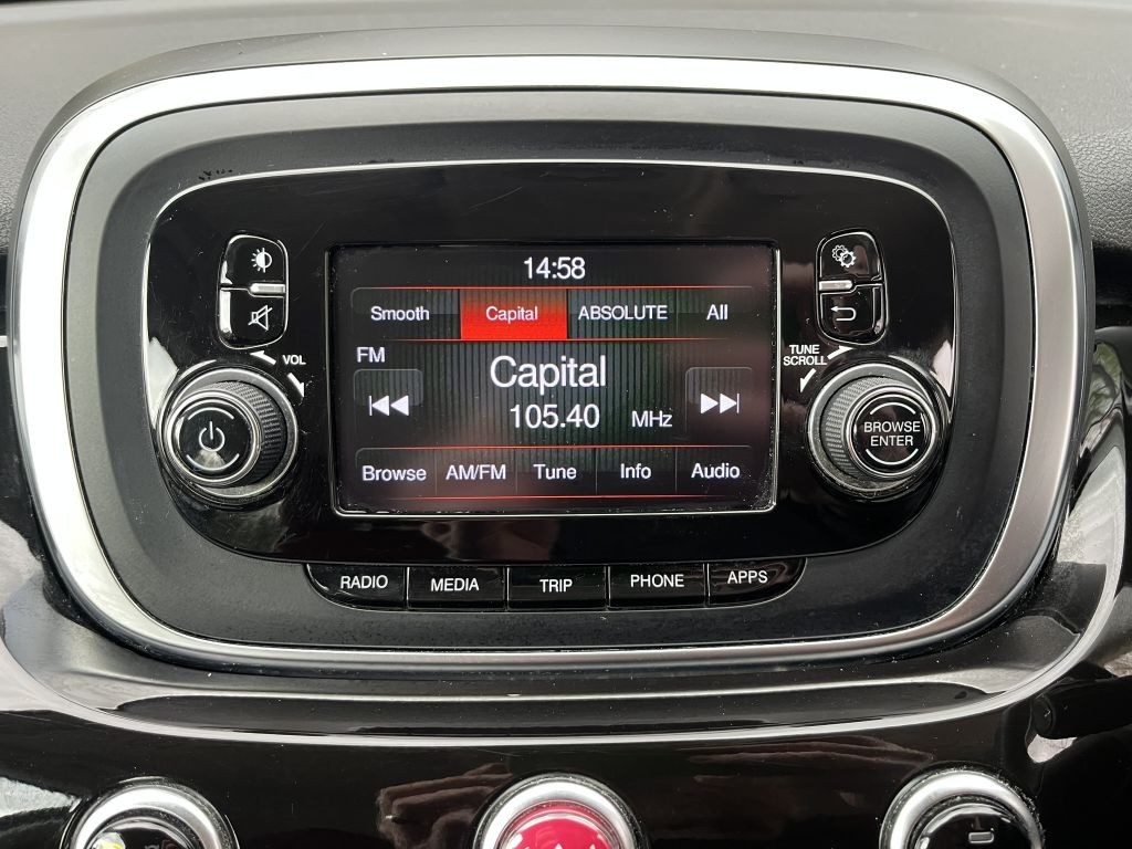 This is a stylish ULEZ compliant Fiat 500X with just 76,064 MILES and FULL SERVICE HISTORY! 9 services including timing belt and water pump at 39K and just serviced by us at 76K. The vehicle benefits from Dual-zone climate control - Alloy wheels - Cruise control - Multi-function steering wheel - Electric windows front and rear - Bluetooth phone connectivity and media streaming - Daytime running lamps - Sports seats - Front fog lamps - Rear parking sensors - Touch screen media interface - ISOFIX - Locking wheel nuts and key - Tailored carpet mat set - 2 x keys - Spare wheel and toolkit - Owners manual and book pack - Just serviced - finished in timeless metallic black!